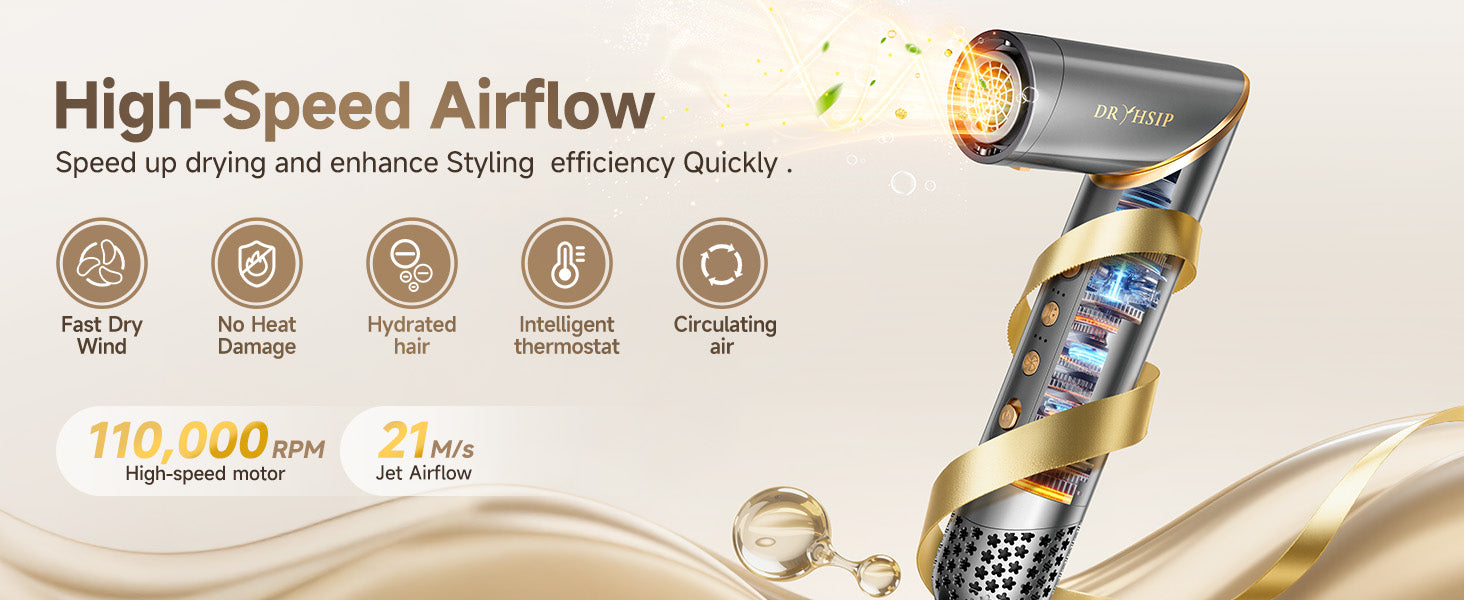 Dryhsip hair dryer sets offer powerful power, which delivers high-velocity, high-speed airflow for fast styling with precise and consistent temperature control to prevent overheating, reduce frizz, and minimize heat damage.
