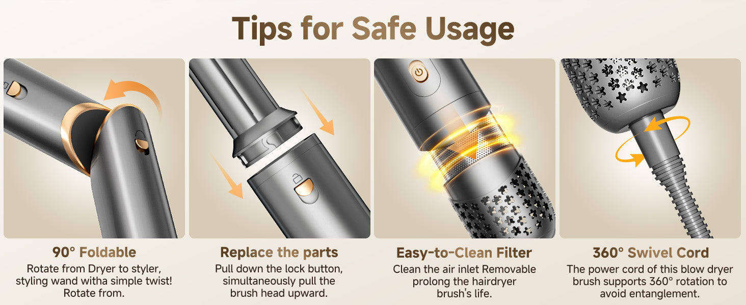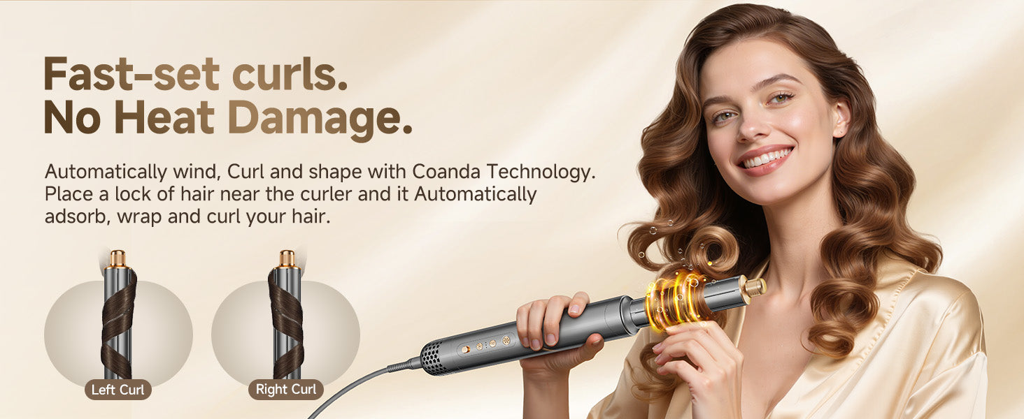 • High-Speed Motor & Advanced Airflow Technology - The 8 in 1 hair styler with 1400w motor, and powerful airflow up to 25m/s can accelerate drying, shorten your styling time in half,leaving your hair smooth, frizz-free, shiny. Innovative airflow shapes hair with hot air, creating long-lasting curls and waves